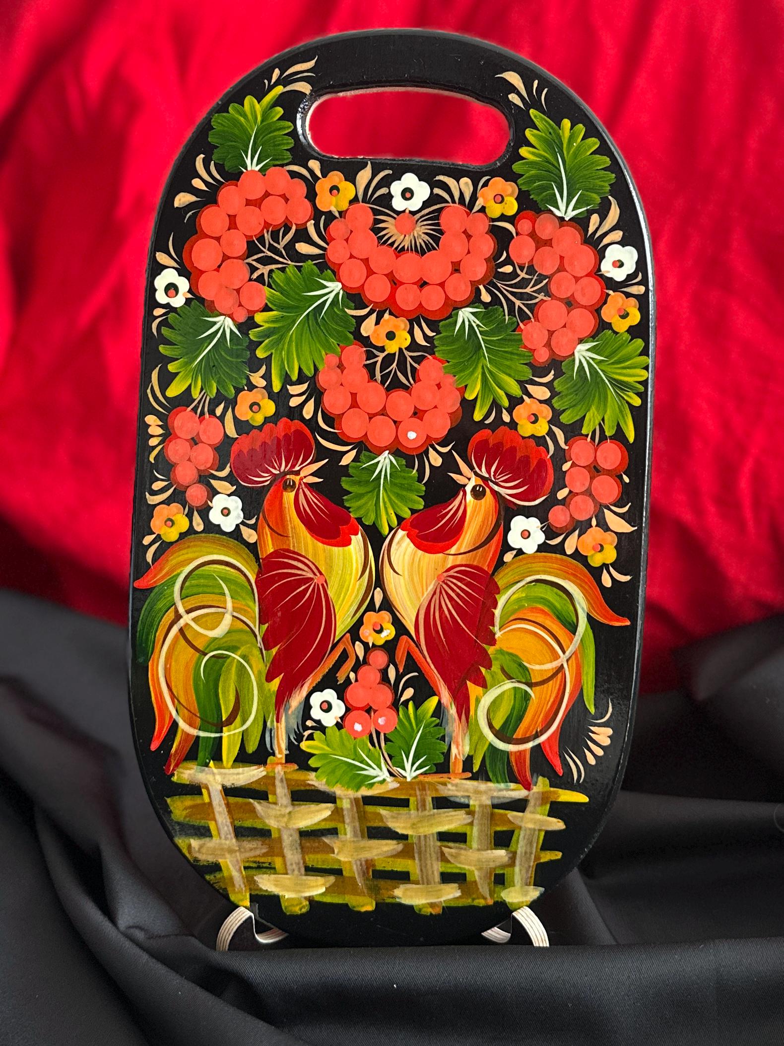 Ukrainian Cutting Board with Petrykivka Painting Handmade Wood