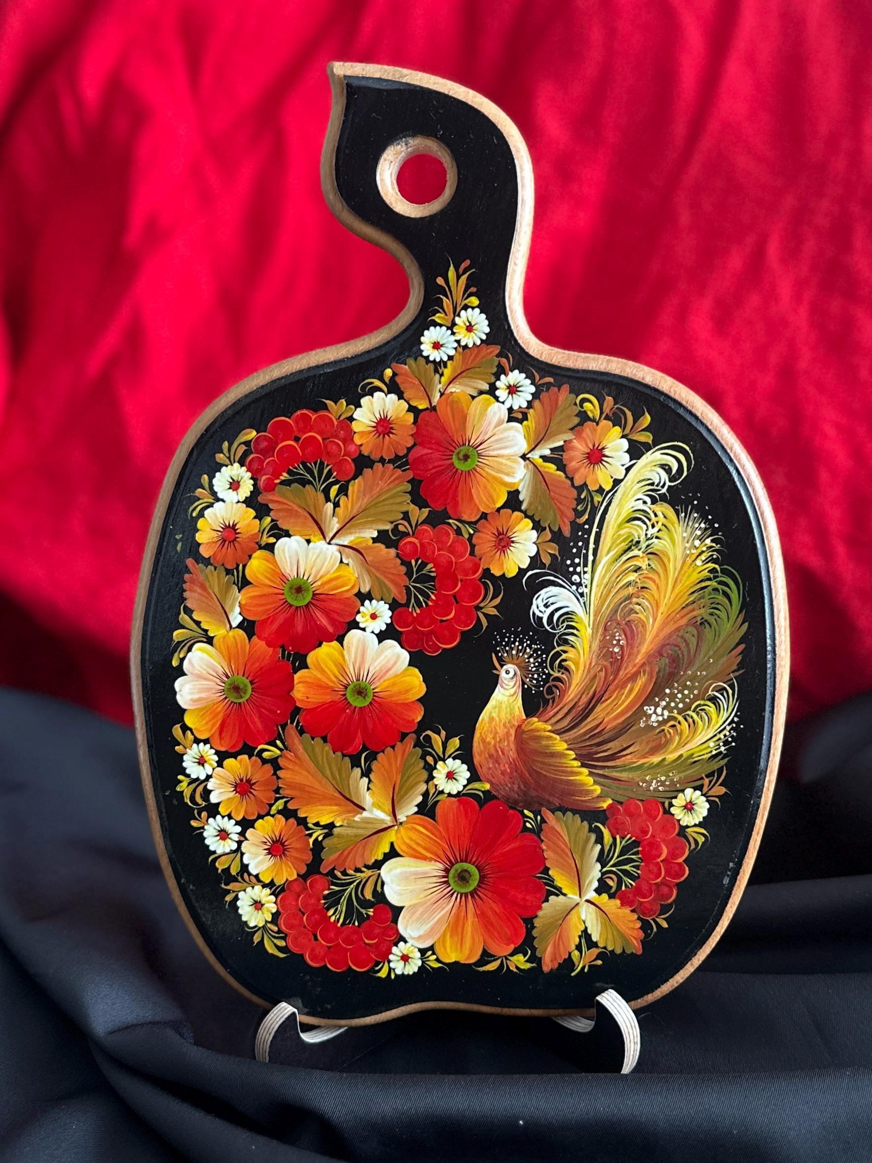 Ukrainian Cutting Board Petrykivka Painting Handmade Wood "Apple-Form"